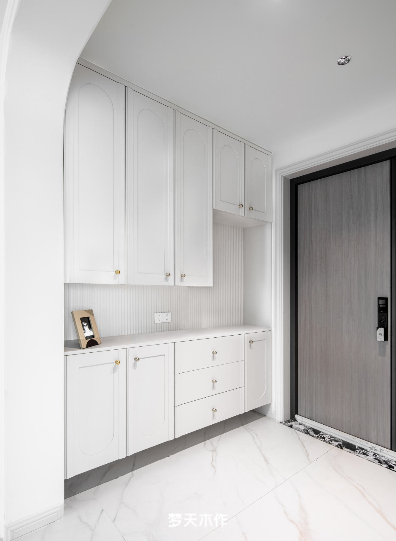 入户设计追求功能性与美观度并重,两侧大面积使用玄关柜设置,大大增加空间收纳能力,让空间充分利用起来。