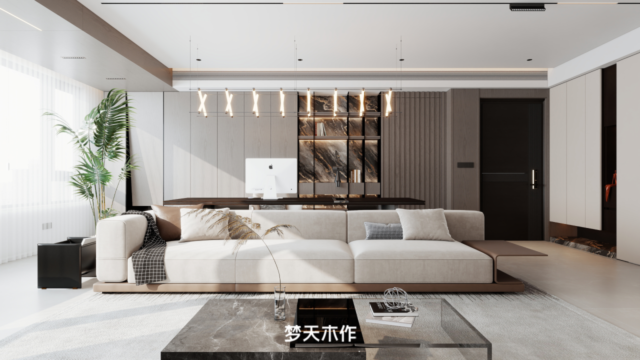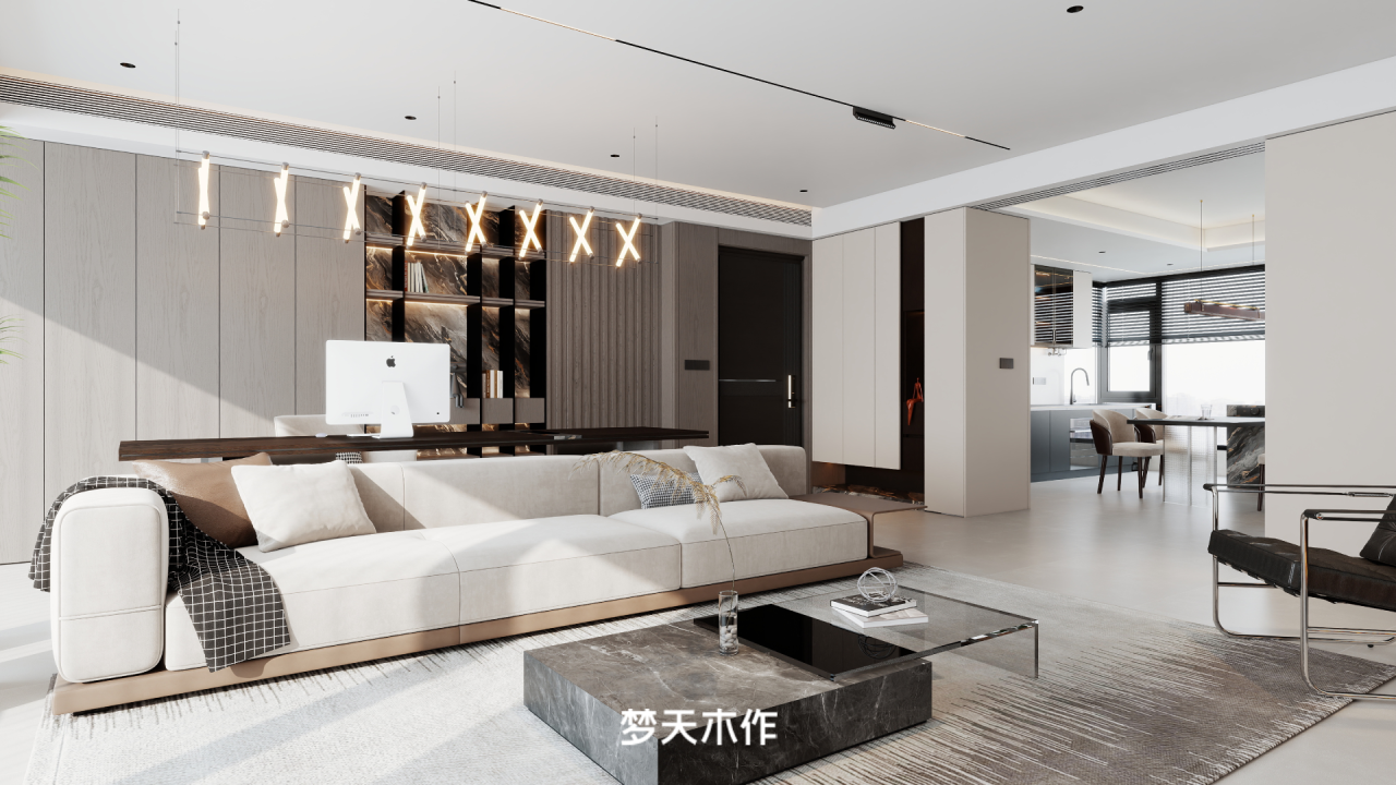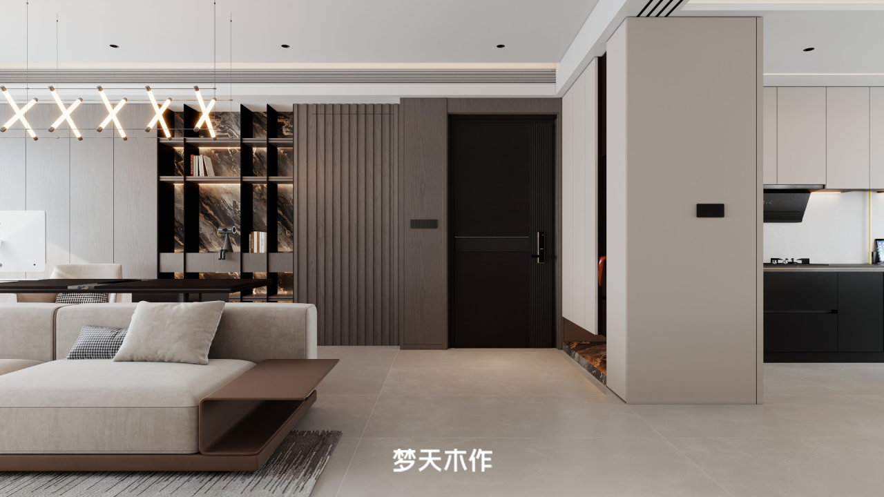 一体打通的客餐厅不仅承载待客空间与功能区域,更以简约的现代美学风格成为家的聚集地。客厅+餐厅+书房无缝衔接,最大限度释放空间尺度,风格一致的收纳柜体设计,让有限的空间承担休闲、学习、用餐、储物等多元化功能。