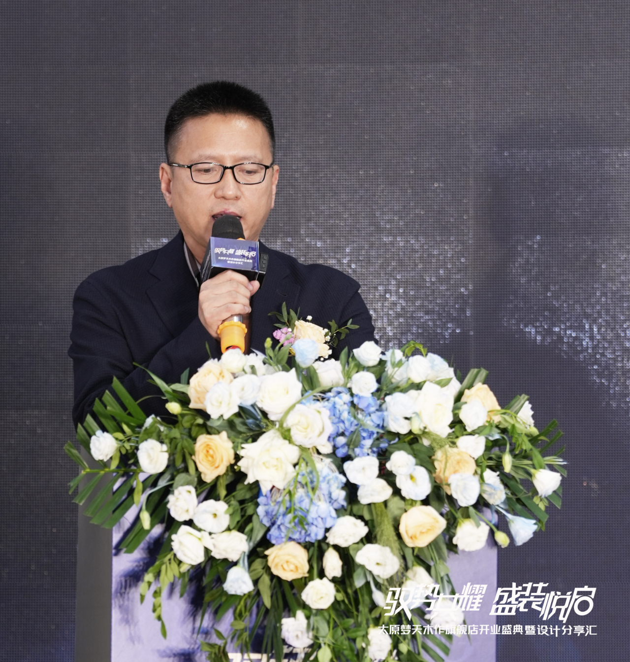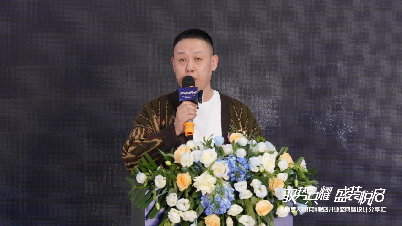 梦天家居总经理余静滨上台致辞,对在座领导、嘉宾的到来表示热烈的欢迎,并对太原梦天木作旗舰店盛大开业表示由衷的祝贺。他表示,梦天木作始终致力于为消费者“装修一个家”贡献木作价值,持续优化、打通全场景空间产品链路,以更有品味的木作美学与高端品质,为更多消费者提供健康舒适的一站式水漆高端定制生活新体验。
