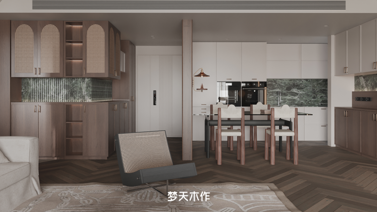 在设计全球化语境下构建属于国人的居住美学,梦天家居以“文化转译”思维作答,联合行业知名设计师,将传统榫卯工艺转化为现代模块化设计语言,让屏风隔断的山水画卷在现代氛围光效中焕发新韵。其推出“雅奢”“中古”系列产品,采用参数化设计技术解构宋代建筑美学,使古典元素与智能家居完美适配。